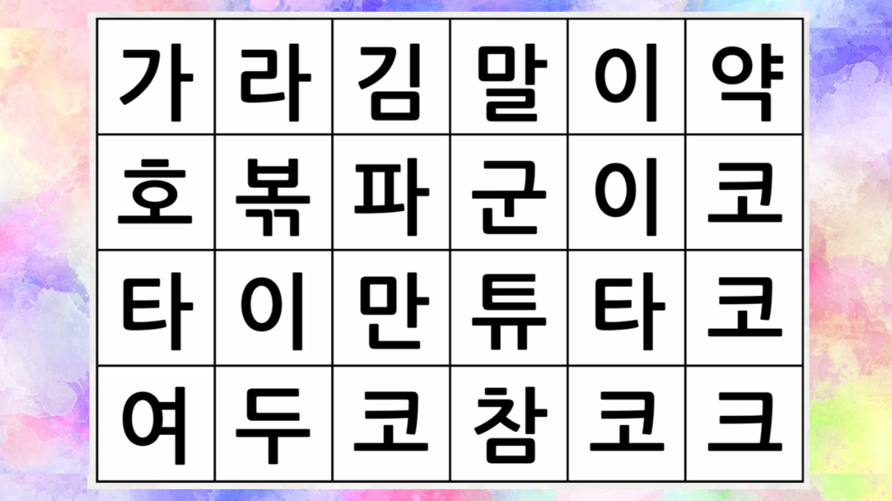 #숨은단어찾기 #치매예방 #치매테스트 #퀴즈 #치매예방퀴즈 #낱말퀴즈 #두뇌회전 #두뇌퀴즈 #치매예방게임